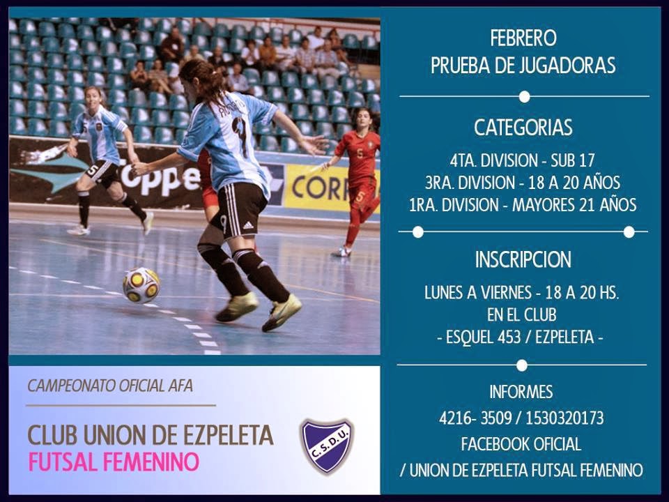 En el día de hoy comenzaron las pruebas para pertenecer a los planteles de 1ra., 3ra. y 4ta. división del Futsal Femenino de Unión de Ezpeleta de cara a representar al Club en el Campeonato Oficial de A.F.A.